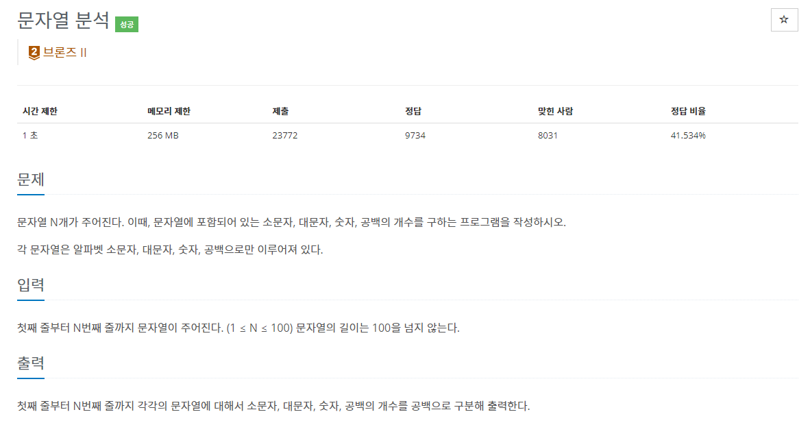 문자열 N개가 주어진다. 이때, 문자열에 포함되어 있는 소문자, 대문자, 숫자, 공백의 개수를 구하는 프로그램을 작성하시오. 각 문자열은 알파벳 소문자, 대문자, 숫자, 공백으로만 이루어져 있